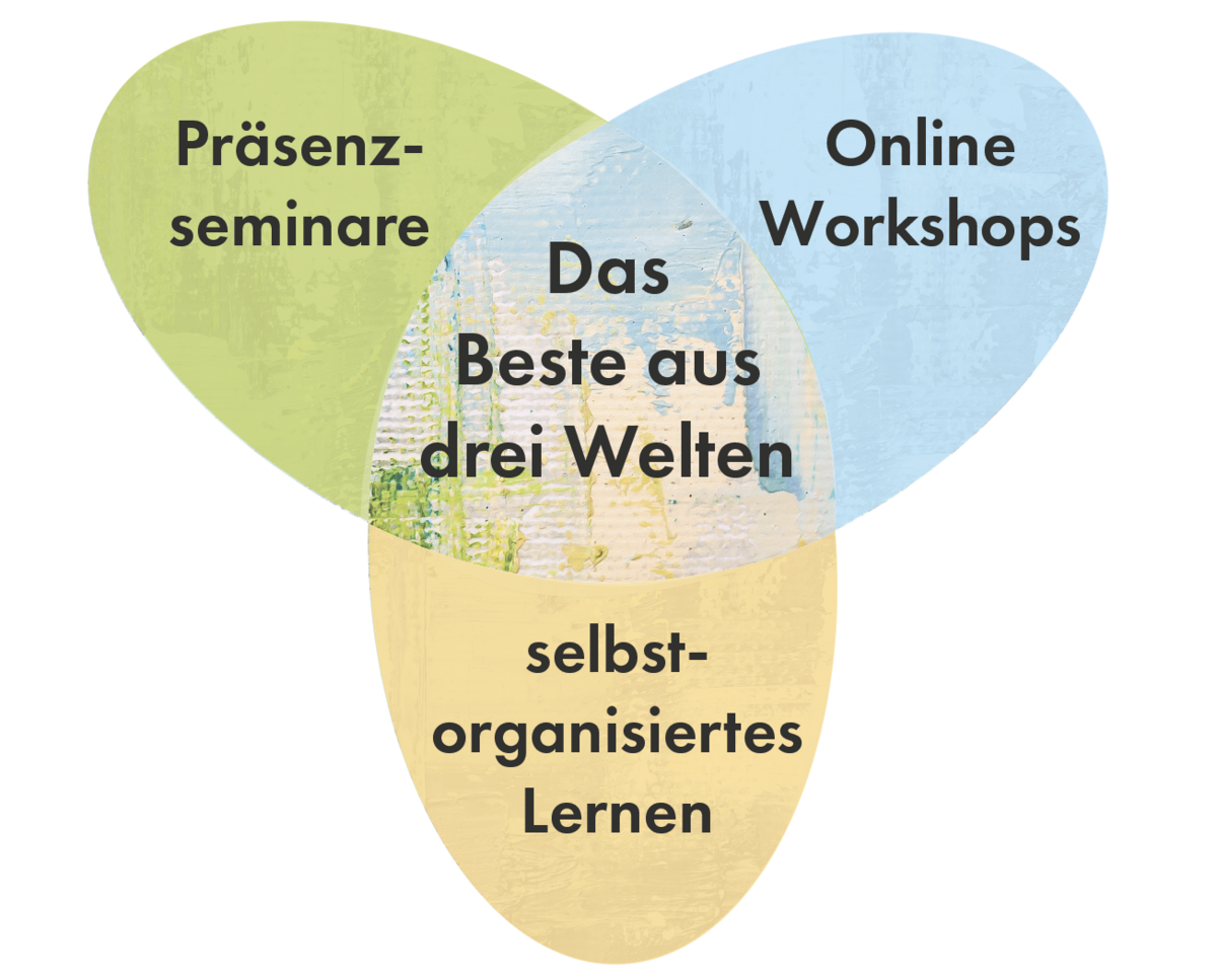 Das Blended-Learning Format der Weiterbildung kombiniert verschiedene Lernwelten miteinander: intensive Präsenzseminare in einer festen Lerngruppe, interaktive Online-Seminare im virtuellen Lernraum, Web Based Trainings und weitere individuell gestaltbare virtuelle Lernmöglichkeiten.